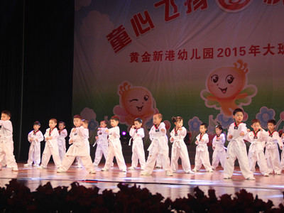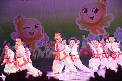 精彩的节目一个接一个,口才班的小朋友为大家朗诵了《三字经》,还把辩论会《哭和笑》搬到了舞台上,小朋友的好口才和创意大胆的发言得到了充分的发挥,舞蹈《聪明宝贝》、《中国结》、《草原牧歌》、爵士舞《Candyman》,不同的舞蹈风格小朋友都都诠释得十分到位,跆拳道和武术的表演更是让在场家长掌声雷动,英语的情景剧《我的梦想》、《丑小鸭》和英语歌舞《歌舞童年》则展现了小朋友们在幼儿园所学到的英语口语表达能力,健身操《创造奇迹》展现了老师们健美的身段。