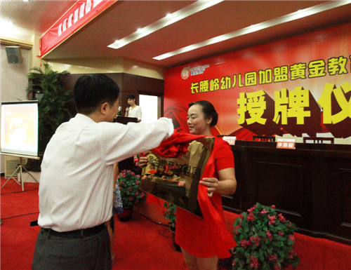 李惠健董事长给长腰岭幼儿园授牌——黄金教育加盟园