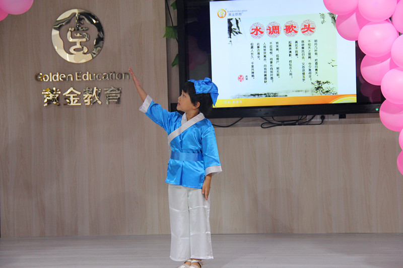 阅读口才训练班的张蕙萱小朋友表演《水调歌头·明月几时有》