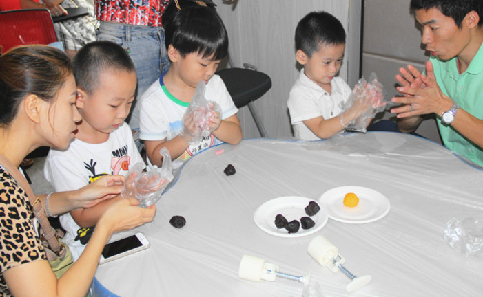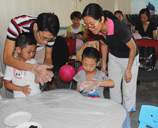 中秋节就快到啦,黄金玩学中心“欢乐中秋庙会”真热闹!动动小手自己搓搓面团,DIY制作冰皮月饼,还猜灯谜,吃水果大餐,做灯笼……9月19日上午,近40个家庭欢聚在这里,热热闹闹一起迎接中秋传统佳节。