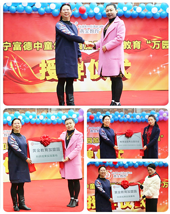 莺初解语燕归时,人间三月芳菲至。在这个充满希望的季节里,2017年3月10日,黄金教育“万园同盟”迎来了又一个黄金加盟园大家庭新成员——南宁市富德中童幼儿园!