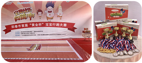 “黄金杯”宝宝行跑大赛主张“健康运动、快乐成长”,自2008年创办以来,已经拥有9年历史,每年4月份左右,在广州、江门、广西等地连续举办,受到孩子和家长热烈的欢迎和认可,累计数万名孩子参加大赛。大赛走进阳春,为阳春的孩子搭建一个健康运动的平台,激发孩子的运动兴趣,促进亲子之间交流,同时也能培养孩子的AQ(抗挫折能力),对孩子来说,是一种难得的体验,也是一次宝贵的成长。“宝贝快乐向前冲”这一大赛口号,不仅鼓励孩子快乐地向跑道终点冲刺,也激励他们在人生道路上扬帆起航、勇往直前。