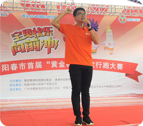 2017年5月6日,黄金教育“阳春公益行”的第一站——阳春首届“黄金杯”宝宝行跑大赛欢乐开跑!同时隆重地进行黄金教育进驻阳春旗峰花园的启动仪式。本次教育公益行活动受到社会各界热切关注,阳春电视台、阳江日报、阳江侨报、阳春地产网等媒体到场采访与报道。