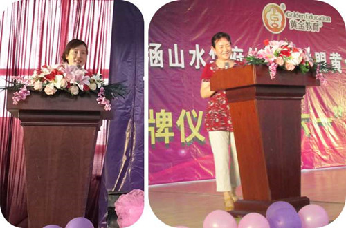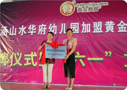 隆重而热烈的加盟授牌仪式在致涵山水华府幼儿园举行,黄金教育科技国际集团直营园总园长龙淑敏、韶关山水华府幼儿园总园长胡桂平以及韶关致涵山水华府幼儿园陈主任等领导和嘉宾出席了活动,与众多幼儿家长共同见证这一重要时刻。
